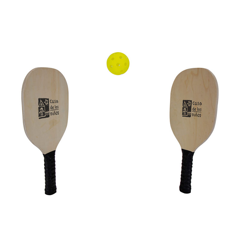 Pickleball Set with Natural Wood Paddles, Ball and a Mesh Carrying Pouch