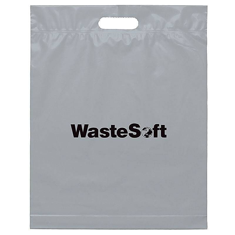 Put your message on the move and watch trade show attendees carry your company to new places with these thick die-cut handle plastic bags.
