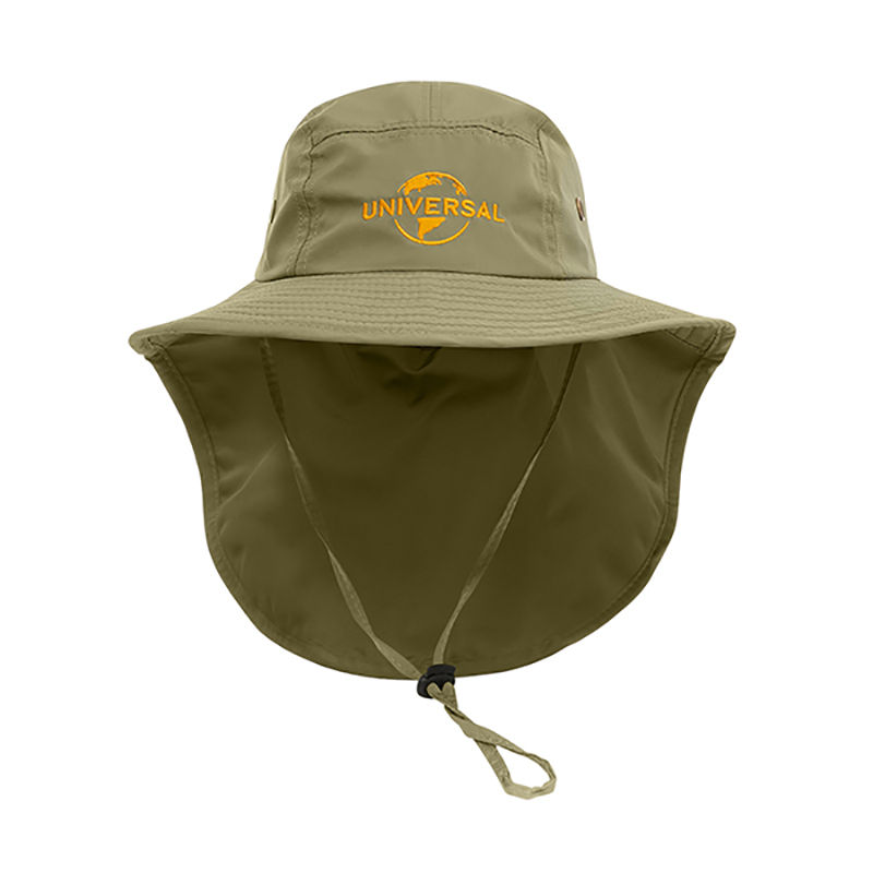 Polyester Bucket Hat with Adjustable Chin Drawstring and Full Neck Shield Tail