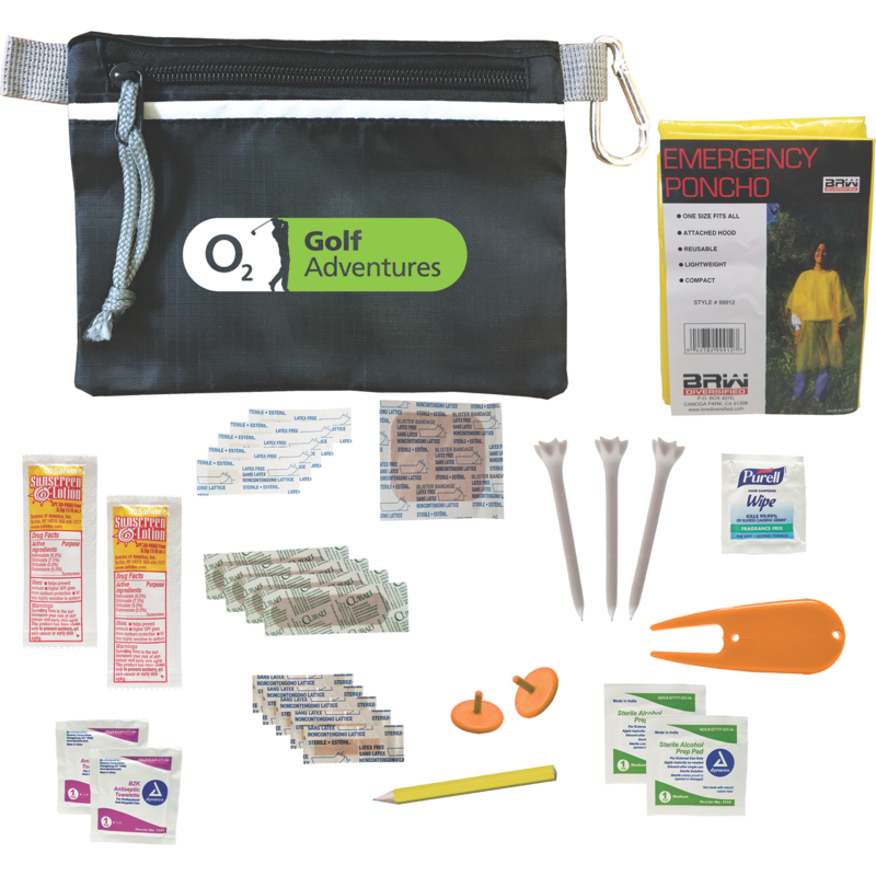 Practical Golf Safety and Wellness Kit with Sunscreen, Tees, Bandanges, Ball Markers and More