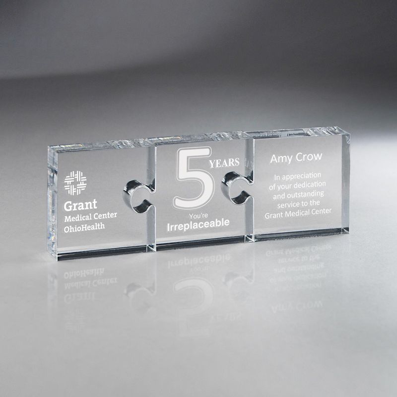 Piece the years together with Years of Service acrylic puzzle pieces.