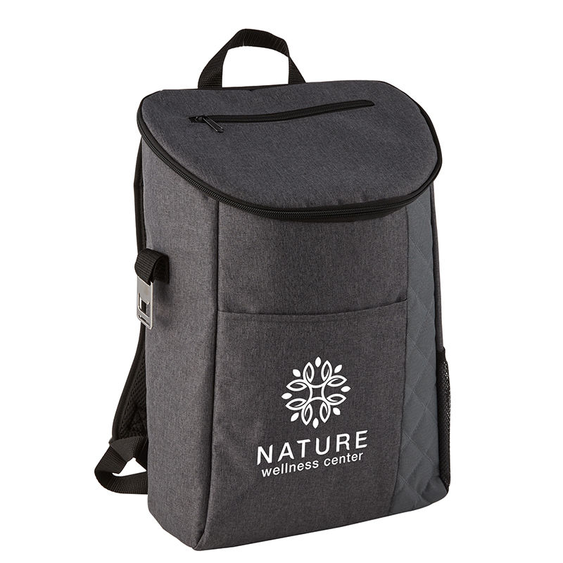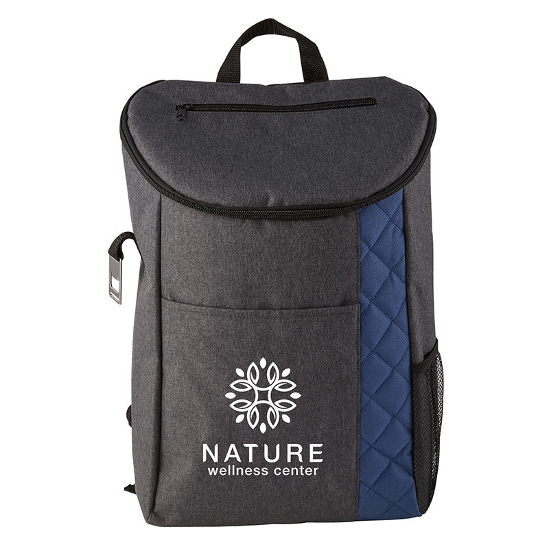 Quilted Pattern Cooler Backpack Holds 24 Cans and Features Two Outside Pockets and a Built-In Bottle Opener