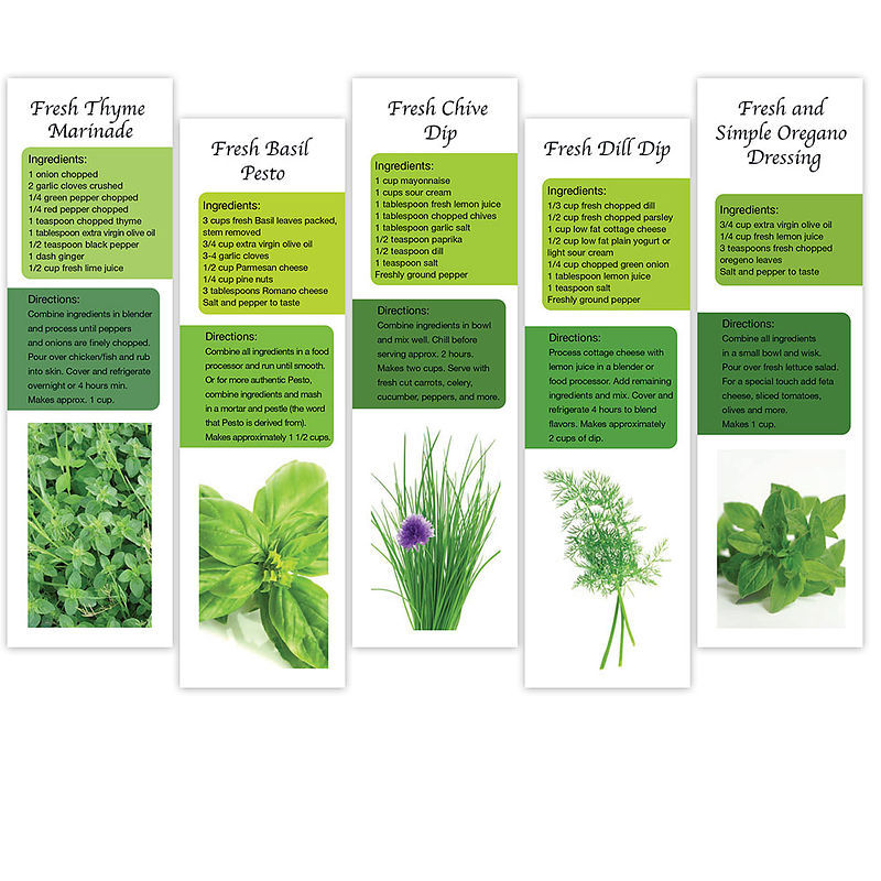 Unique bookmark features your full color message on front with vibrant herb seeded insert and recipe on back.