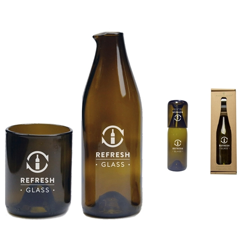 Refresh Glass® Nesting Carafe and Glass Made from Rescued Wine Bottles
