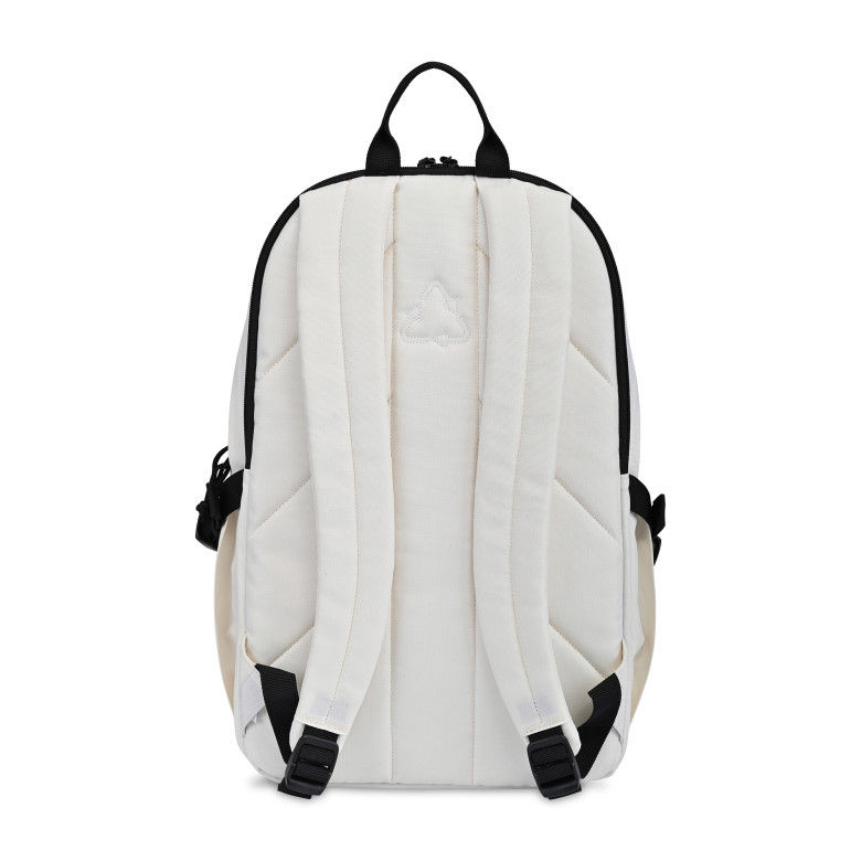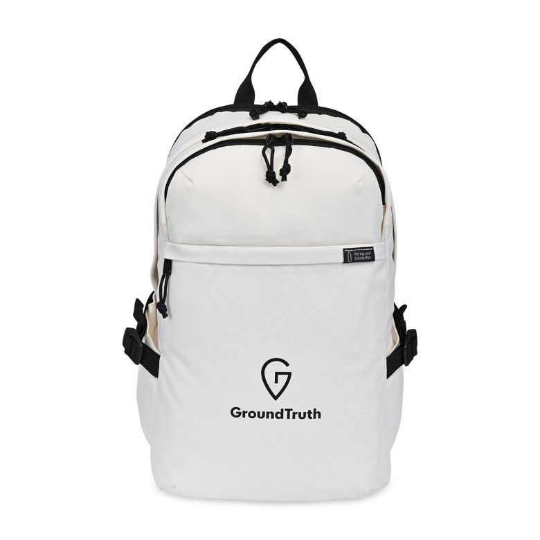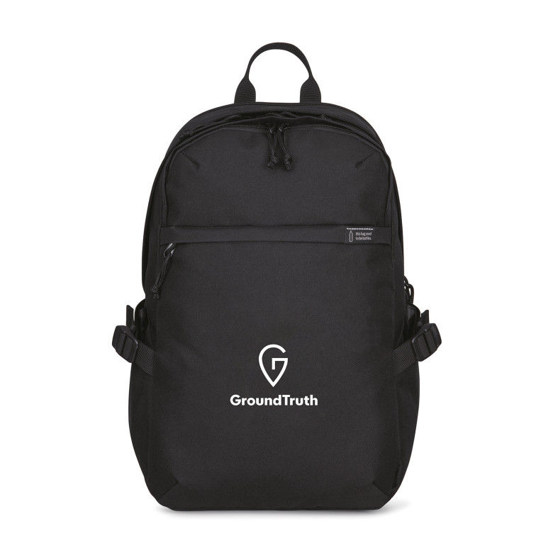 A modern and sustainable update to a classic computer backpack using recycled fabric and webbing made from plastic bottles.