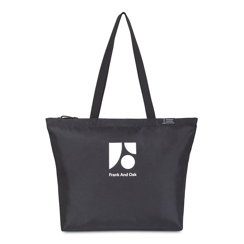 A modern and sustainable update to a packable shopper using recycled fabric and webbing made from plastic bottles.