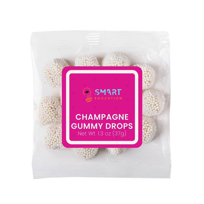 Enjoy a taster-sized packet (1.3 oz) of Champagne Gummy Drops - Champagne-flavored gummy drops covered with nonpareil "bubbles". Non-alcoholic.
