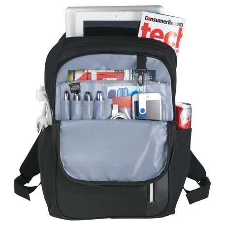 Standard features include a zippered main compartment that holds up to a 15” laptop as well as a separate padded compartment for your iPad or tablet.