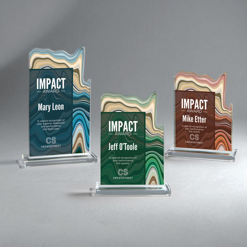 Blue Sedona Ridge Award emulating the beautiful rock formations in Arizona with inspiring artistic patterns highlighting your copy and logo.