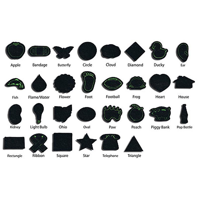 Shapes Include: Apple, Bandage, Butterfly, Circle, Cloud, Diamond, Ducky, Ear, Fish, Flame/Water, Flower, Foot, Football, Frog, Heart, House, Kidney, Light Bulb, CFL Bulb, Ohio, Oval, Paw, Peach, Piggy Bank, Pop, Rectangle, Ribbon, Square, Star, Telephone, Triangle
