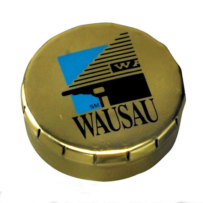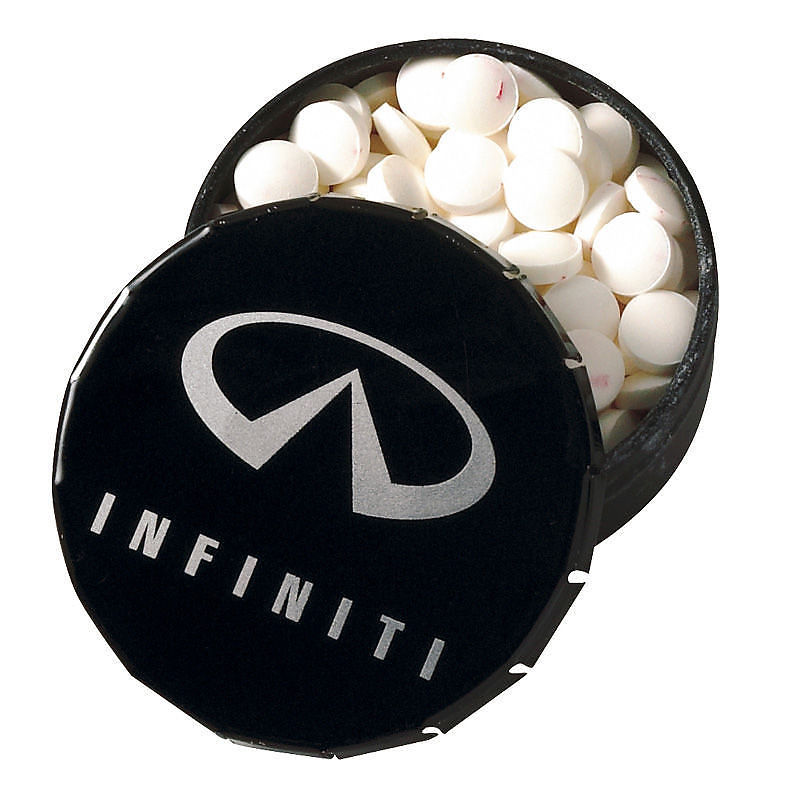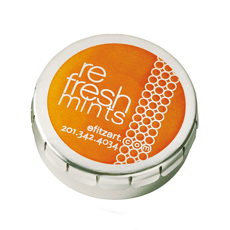 Round "snap top" mint tin filled with peppermint MicroMints®.