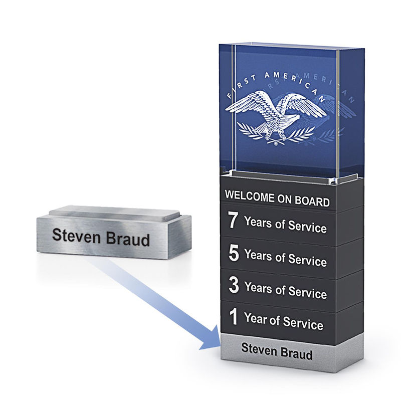 The stackable aluminum bar is part of the build-your-own stackable award series.