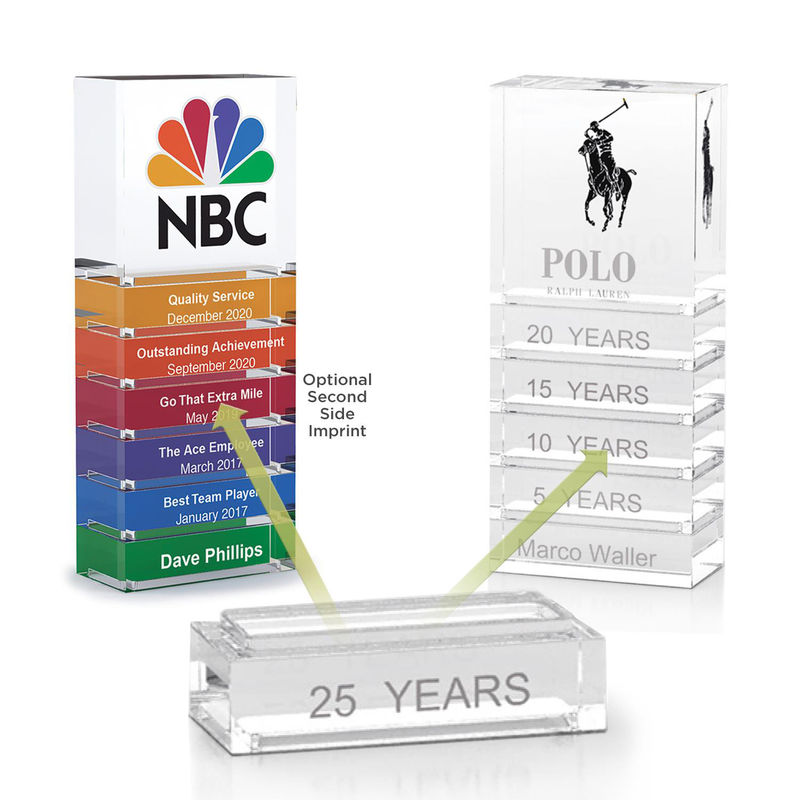 The stackable clear acrylic bar is part of the build-your-own stackable award series.