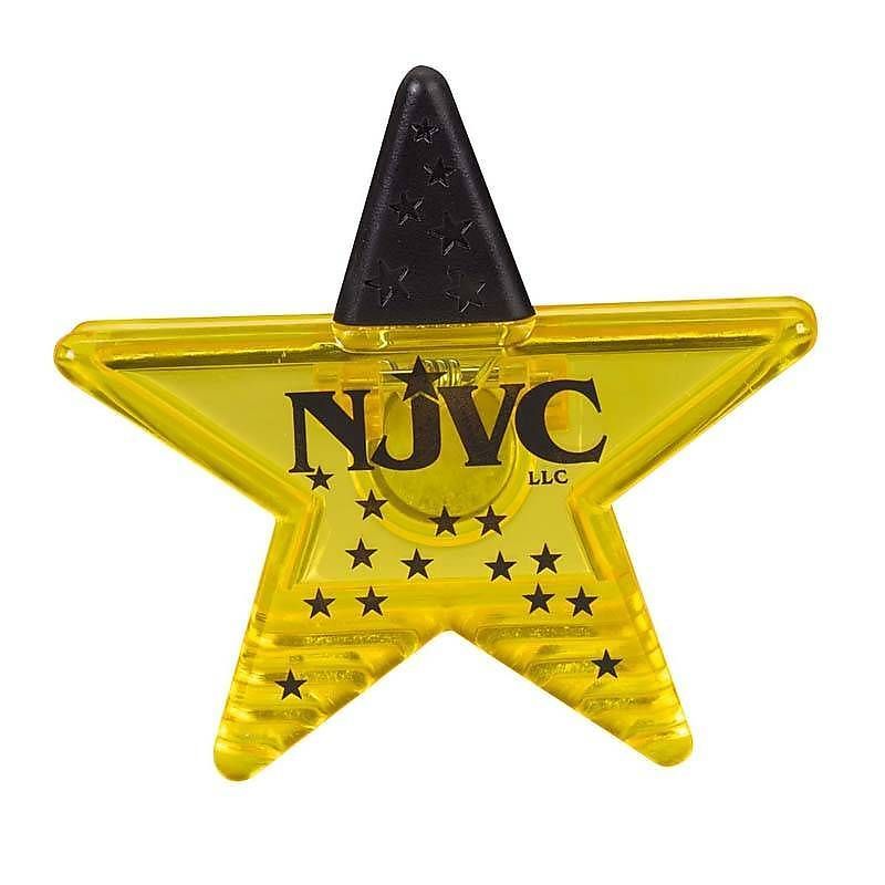 The star clip magnet is sure to be a big hit in the financial and entertainment industries. This clip can hold paper while attaching itself to a magnetic surface.