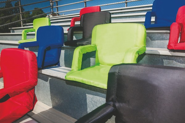 Your buns and back will thank you for easing into the high-density foam comfort of this reclining stadium chair.
