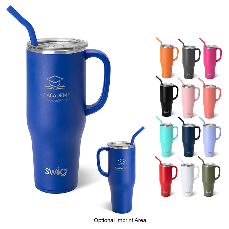 Swig Life® 40 oz Stainless Steel Outer and Copper Inner Liner Vacuum-Insulated Tumbler with Straw and Drink-Thru Lid with Matching Color PLASTIC Handle Fits in Cup Holders