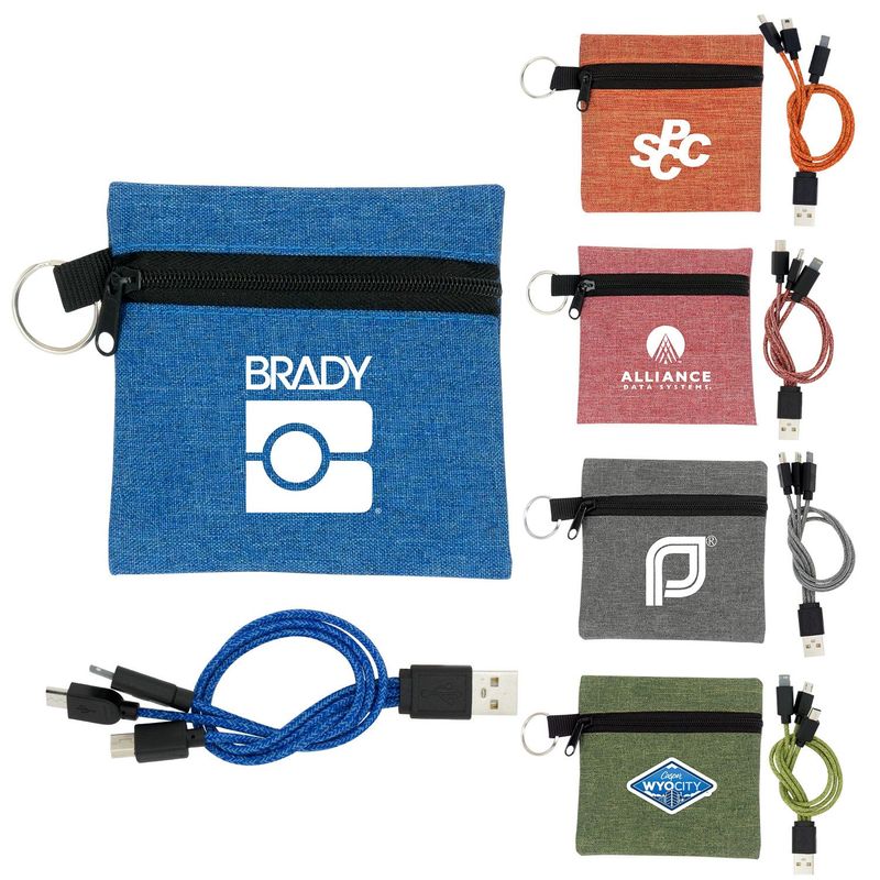 Tech Kit Includes Braided 3-in-1 Charging Cable in Small Snow Canvas Pouch