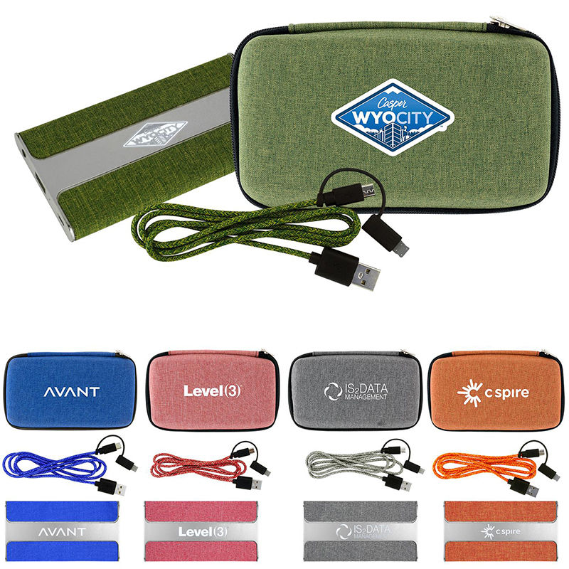Tech Kit Includes LIGHT-UP LOGO Snow Canvas Power Bank and 3' Long Braided Cable in Snow Canvas Zippered Pouch