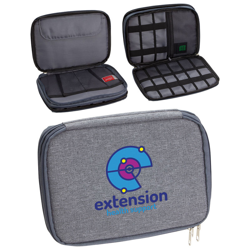 • 2 primary zippered compartments for cables, power banks, chargers, adapters and more