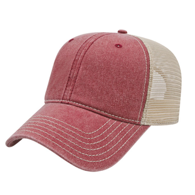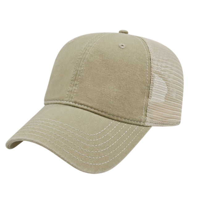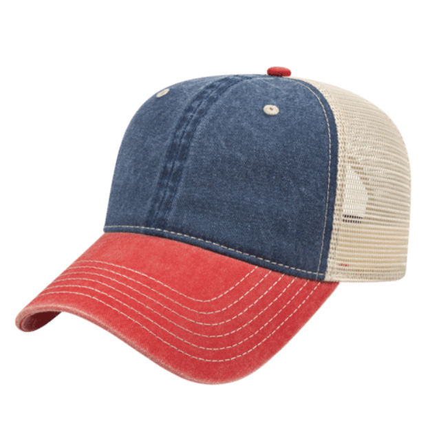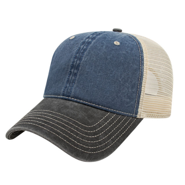 The Vintage Cap - Washed Pigment Dyed Cotton Twill with Trucker Mesh, Plastic Snap Tab - BEST
