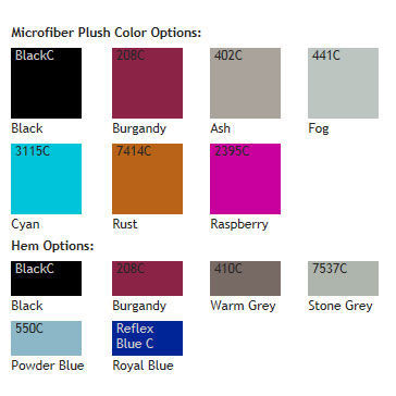 Product/Part Colors 3: Microfiber Plush (Back Side)Color Options: Black, 402 Ash, 3115 Cyan, 7414 Rust, 2396 Raspberry