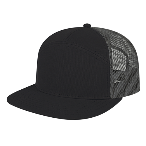 Trucker Hat: 7 Panel, Medium Profile, 100% Poly, Mesh Back, Plastic Snap Tab