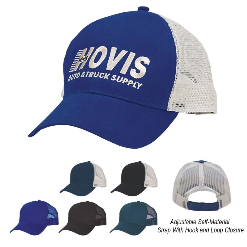 Trucker Hat: Medium-Profile, Brushed Cotton Twill, Mesh Back, Velcro® Closure - PROMOTIONAL