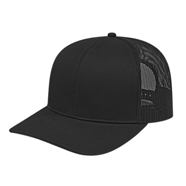 Trucker Hat: Medium Profile, Poly/Cotton Blend, Mesh Back, Plastic Snap Tab - GOOD