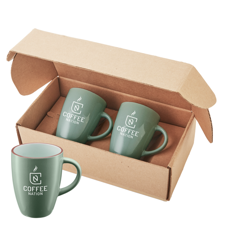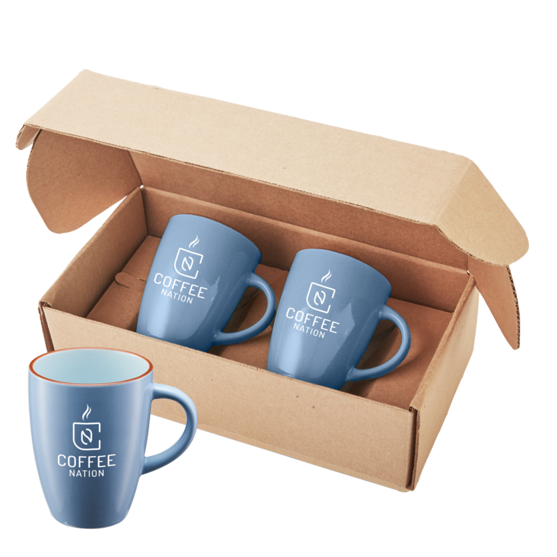 Two 12 oz Ceramic Mugs in a Shippable, Secure, Custom-Fit Gift Box