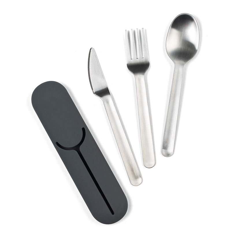This compact set of stainless steel silverware keeps a slim profile, while the silicone carrying case helps things stay clean in transit