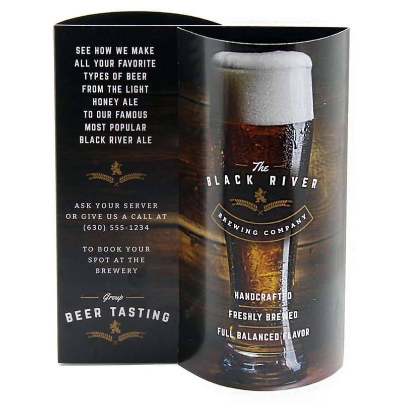 Get custom printed table tents with a twist! Our Wave design features two pop-out panels to feature images, pricing menus, calendars, and more.