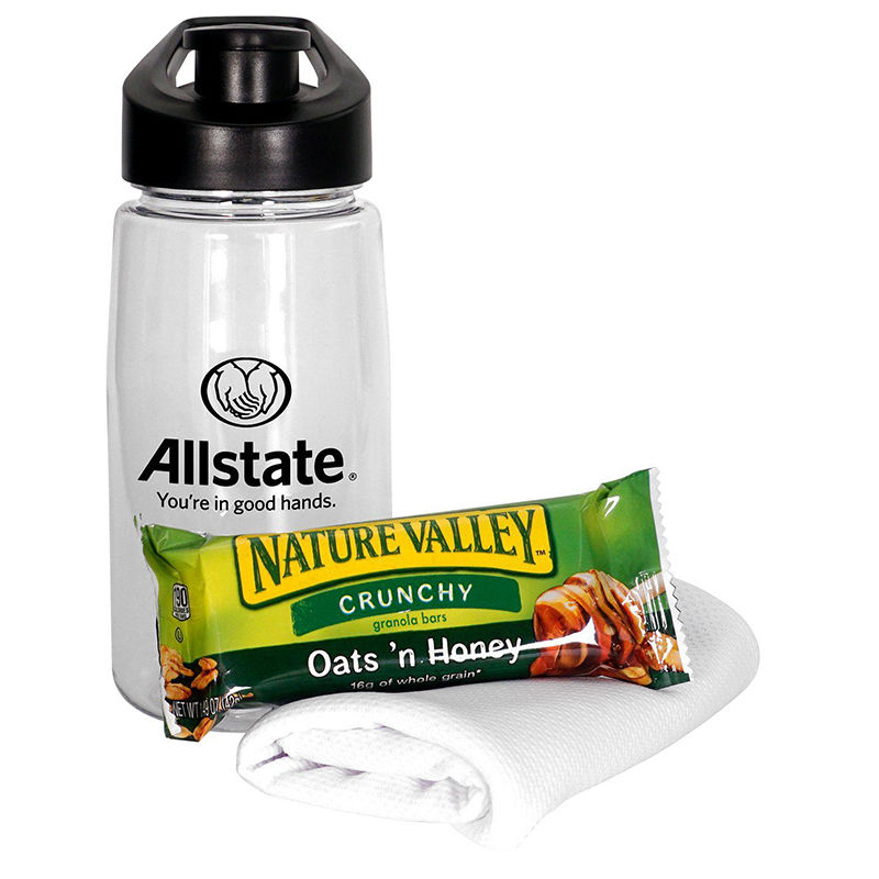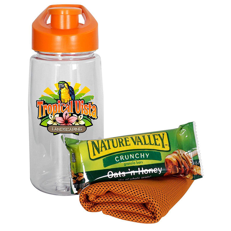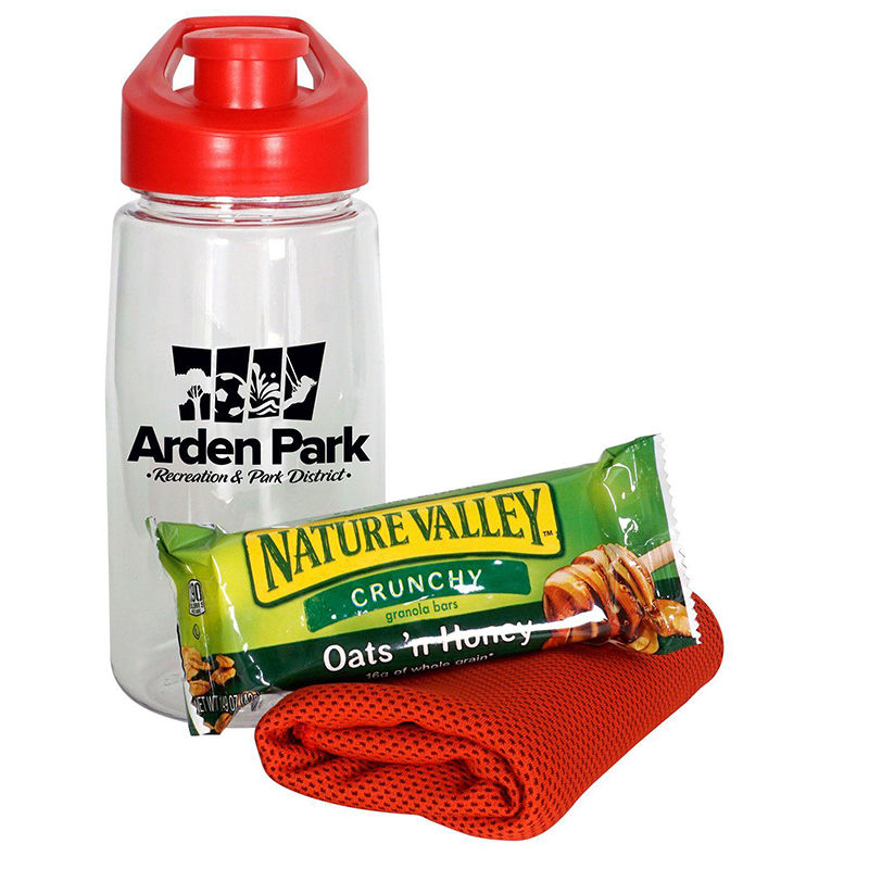 Wellness Box with Bottle, Exercise Cooling Dry Cloth and Granola Bar