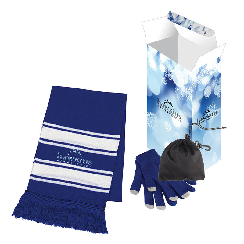 Winter Gift Set with Custom Box Includes Touch-Screen Gloves with Travel Pouch and Scarf