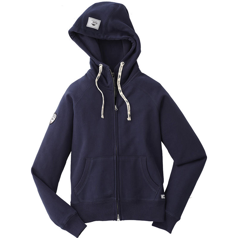 With a jersey knit hooded lining and media pocket, this hoody will keep you cozy in the riverside breeze.