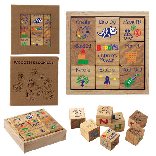 • Pricing includes a 1 1/2" x 1 1/2" full color imprint, up to nine different designs, on the blank side of each block