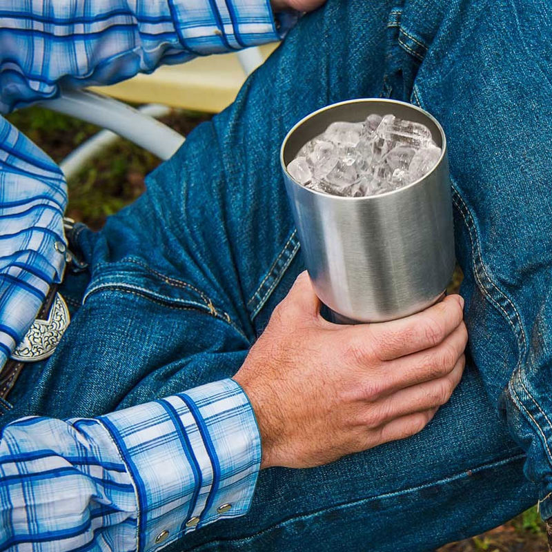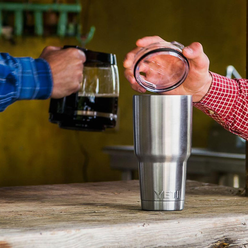 The Rambler 30 oz. Tumbler is made of 18/8 kitchen-grade stainless steel, has double-wall vacuum insulation, and No Sweat» Design. Which means that youÍve got one heavy-duty, over-engineered cup on your hands with the Rambler Tumbler.
