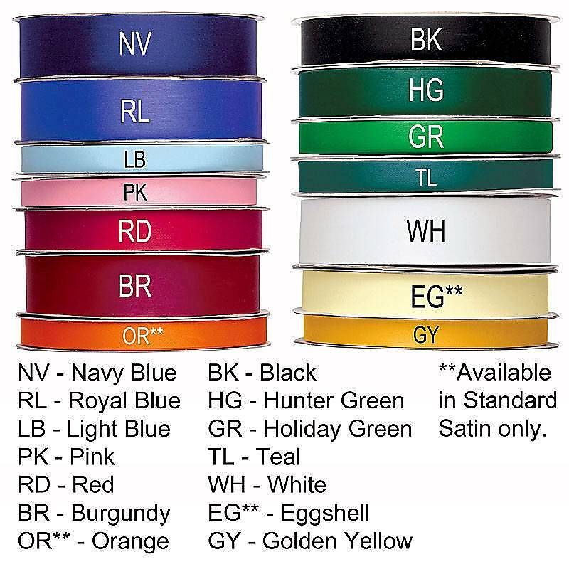 Product/Part Colors 1: Purple (PR), Burgundy (BR), Red (RD), Pink (PK), Golden Yellow (GY), Hunter Green (HG), Holiday Green (GR), Teal (TL), Navy Blue (NV), Royal Blue (RL), Light Blue (LB), White (WH), Black (BK)