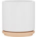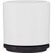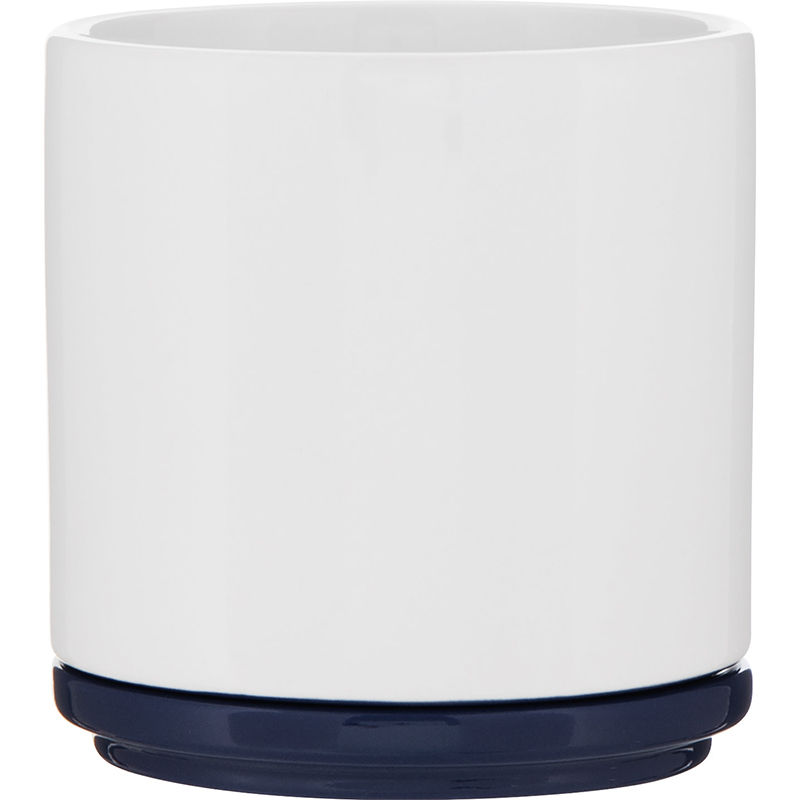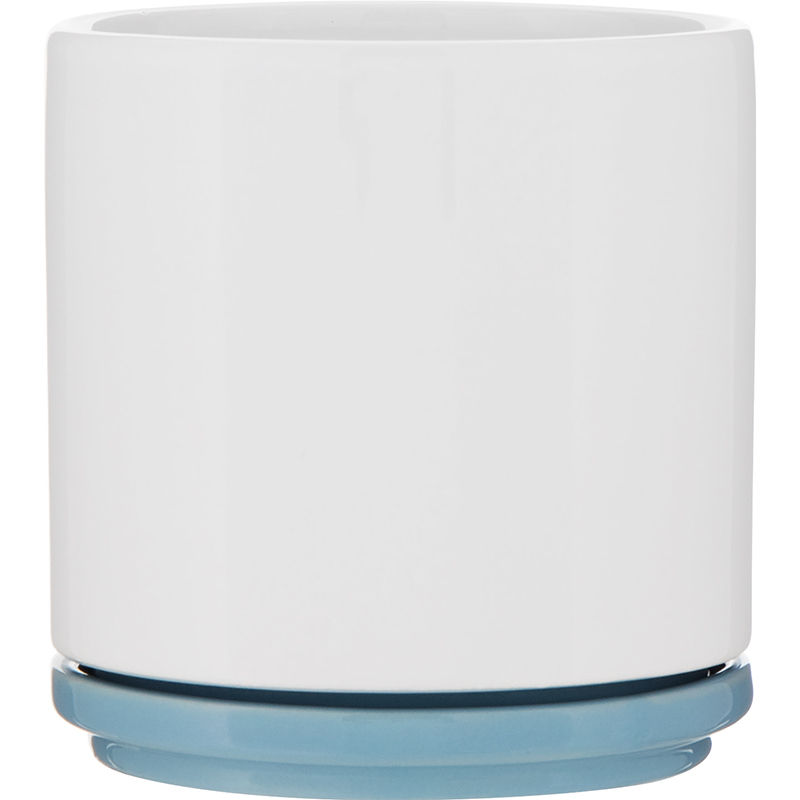 With a glossy white finish inside and out, it’s accented by a matching glossy-colored bottom and a cover that doubles as a saucer.