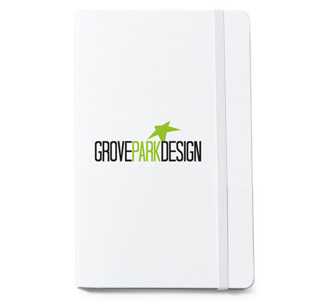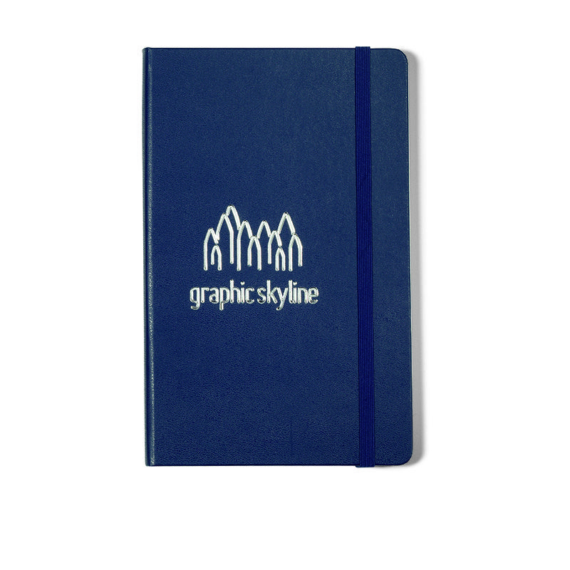 • Bound hard cover with rounded corners, bookmark and elastic strap closure