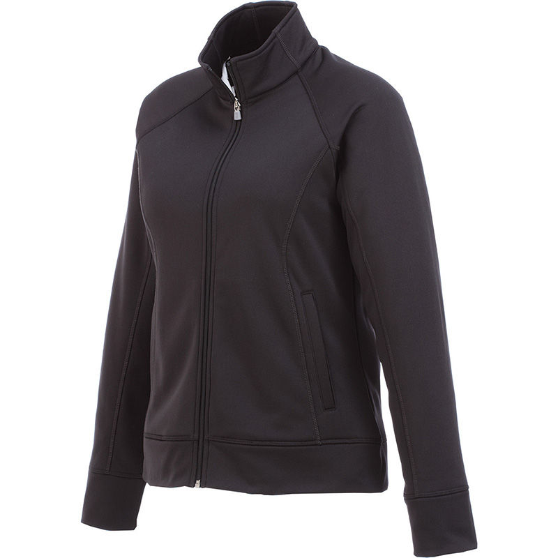 This 100% polyester knit jacket has a brushed back detail and is equipped with mesh pocket bags